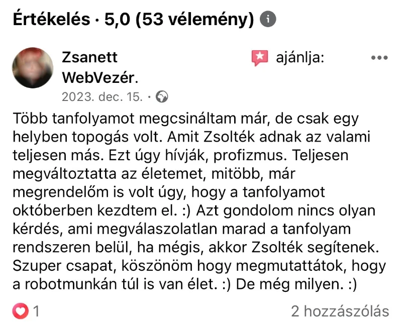 Ha nem vagy elégedett azzal, amit vásároltál, kérd és visszautaljuk a befizetett összeget. 100%-ban biztosak vagyunk a dolgunkban, tudjuk, hogy amit létrehoztunk az tanulható és a tanultakat, a gyakorlatban alkalmazhatják, akik elvégzik a tanfolyamot. Ha Te mégis úgy érzed ez neked magas, akkor élhetsz a garanciával.